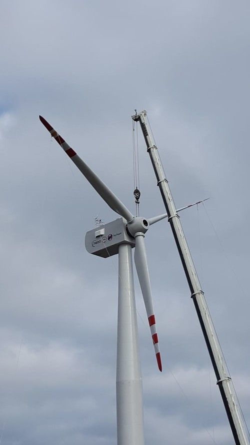 Сейчас внутри смонтированной ветроустановки ведется прокладка силовых и оптоволоконных линий для подключения генерирующего оборудования и систем управления. Монтаж второй установки находится на завершающем этапе, третья установка будет смонтирована в начале сентября после проведения испытаний фундамента.