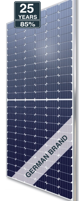 Монокристаллический высокоэффективный фотоэлектрический модуль с Half-cell ячейками в алюминиевой раме.