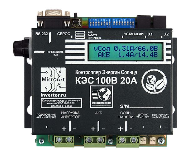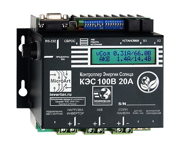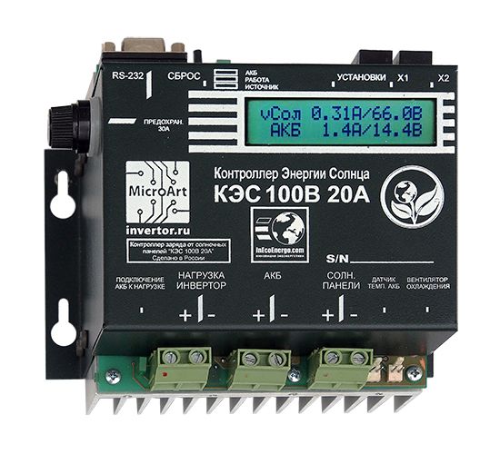 Контроллер рассчитан для работы в фотоэлектрических системах малой мощности при токе заряда до 20 А и напряжении аккумуляторов 12 или 24 В (со стороны солнечных панелей напряжение может быть до 100 В). Контроллер обеспечивает функцию слежения за точкой максимальной мощности солнечных панелей.
