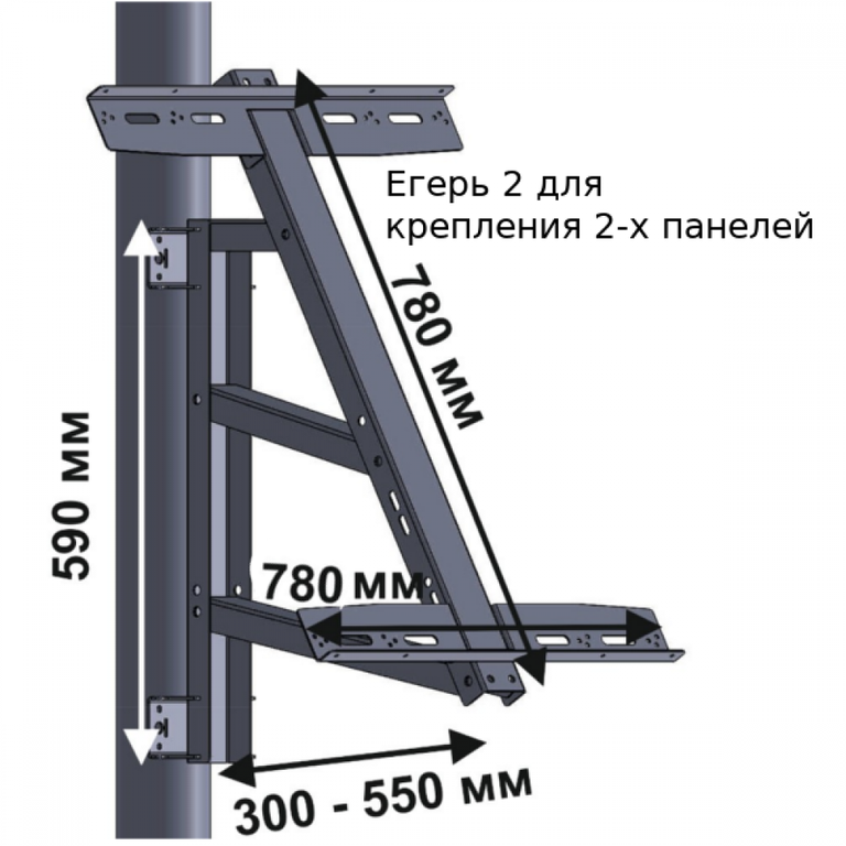 Кронштейн Егерь 2, для крепления солнечных панелей, со стороной 34-69 см, мощностью 30-150 Вт.