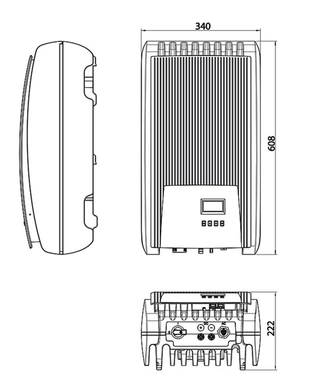 Впервые, очень высокий КПД позволяет изготавливать корпуса инверторов из пластика. Это дает много преимуществ, например, в установке. Инверторы имеют II класс защиты.