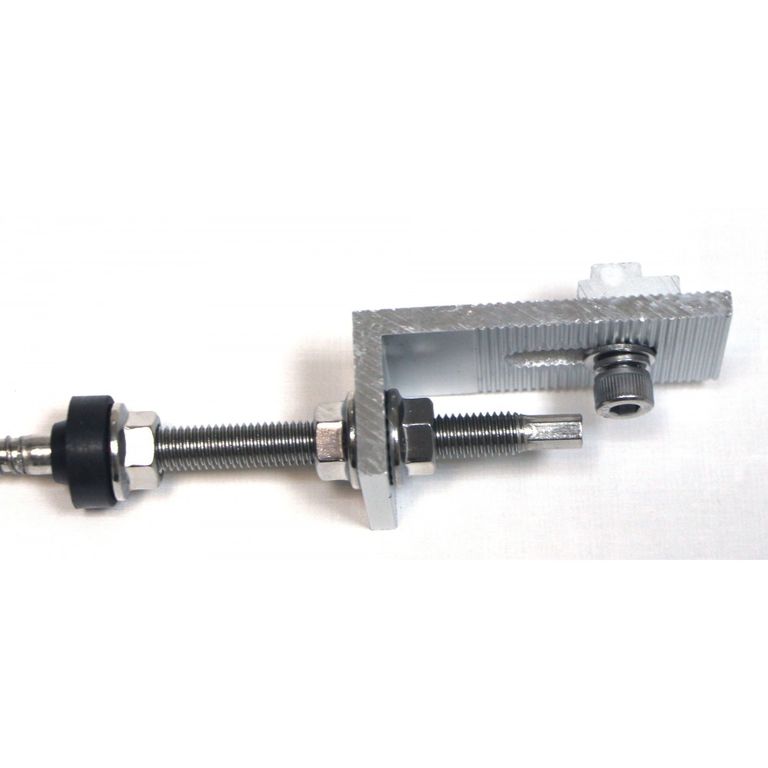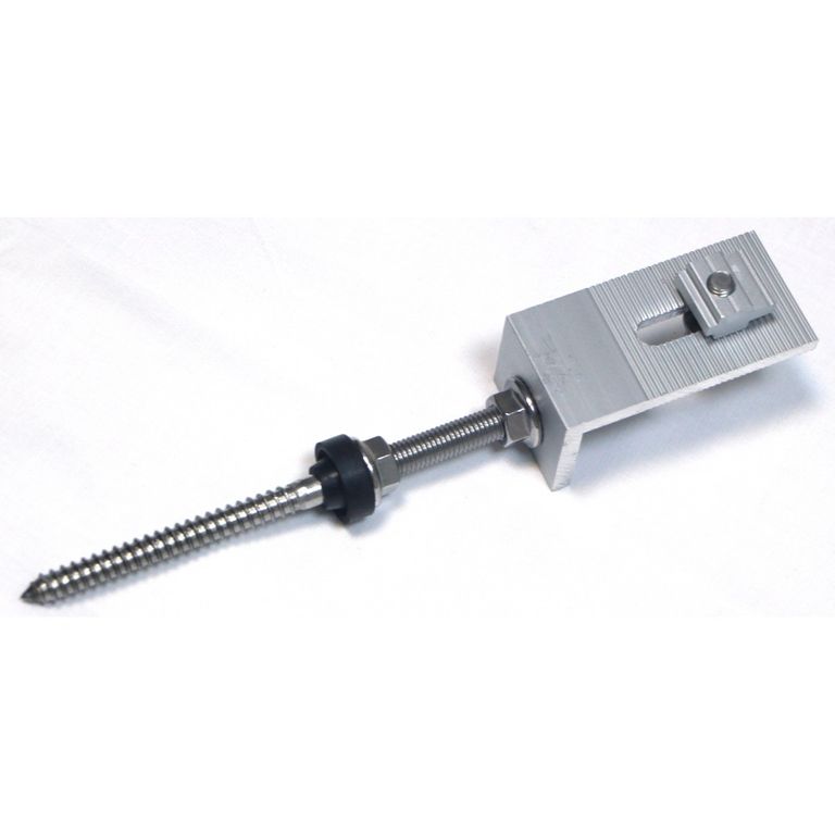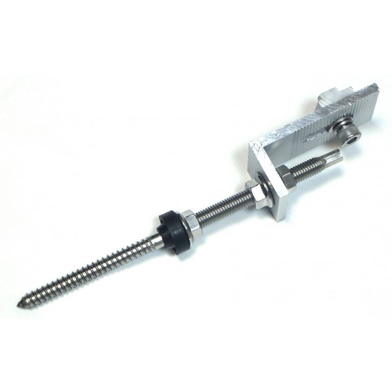 Кронштейн с регулировкой высоты установки профиля для монтажа солнечных батарей. Шпилька и метизы изготовлены из нержавеющей стали. L-образная опора - из анодированного алюминия.